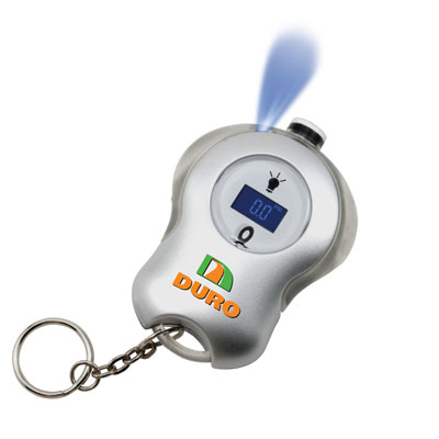 Digital tire gauge with long lasting LED blue light with a split key ring. The device can accurately measure up to 100 lbs PSI. Batteries included.