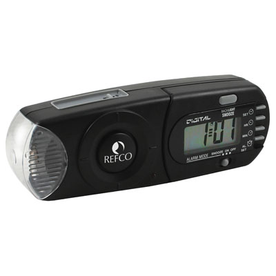 Personal alarm system features a motion sensor alarm, removable jumbo digital alarm clock with back light snooze, powerful flashlight and deluxe carrying strap. Uses 5 AAA batteries and one 9V battery (not included).