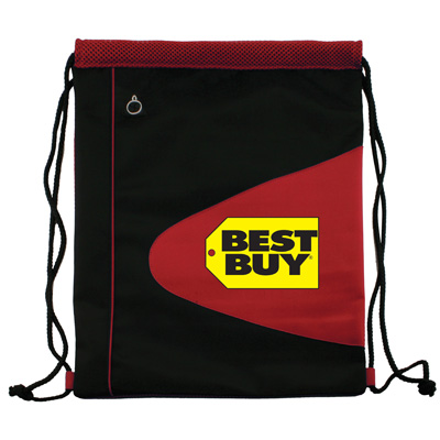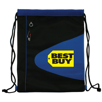 Air mesh and microfiber cinch bag drawstring backpack. Includes headphone port and internal pocket for MP3/iPod player. Extra thick black drawstring cords for added durability.