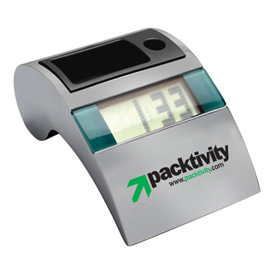 Executive metal desktop table pen caddy with paper clip holder and extra large dot matrix LCD digital clock. Battery included.