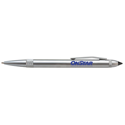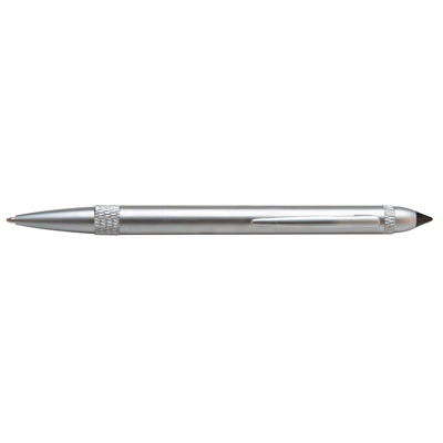 Thin profile PDA pen offers a ball point tip and a stylus pen. Attractive metal finish with twist action mechanism. Not compatible with touch point devices.