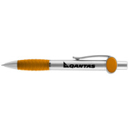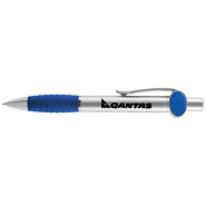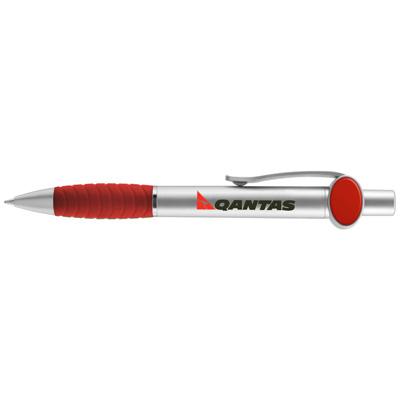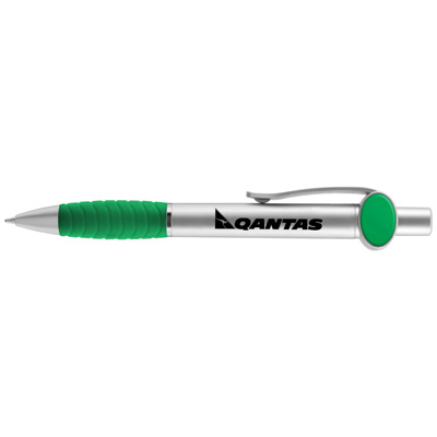 Silver ball point pen offers a groove pattern grip section for comfort.