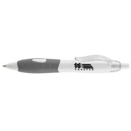Wide profile ball point pen designed with a contoured barrel and grip section highlighted with a clear clip.