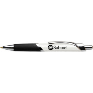 Retractable triangle metal ball point pen allows for imprint on all three sides. Chrome accents and a rubberized grip section.