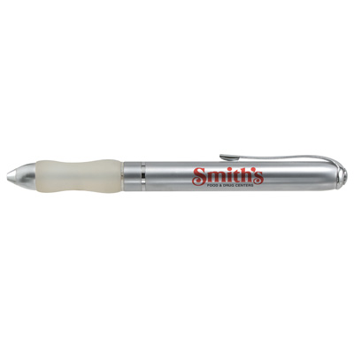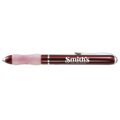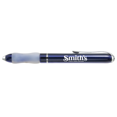 Twist action metal ball point pen features a wide profile and contoured grip section for extreme comfort.