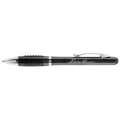 Twist action metal ball point pen has a unique rubber grip section designed with rubber strips.