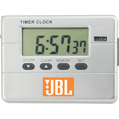 Multi function countdown timer. Features a large LCD quartz display, countdown timer, stop watch, clock, light, tape measure as well as a spring loaded clip/stand. Batteries included.