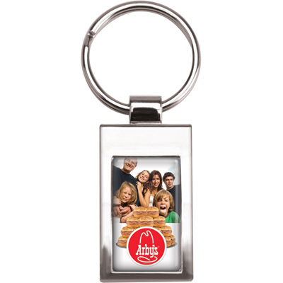 Rectangle shape 2 tone metal key holder with split key ring. Features chrome accents and a matte face plate. Keychain is packed in a deluxe 2 piece black gift box with inlay tray.