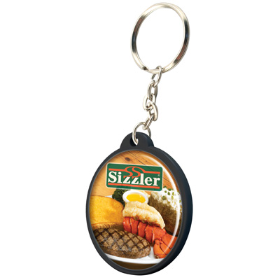 Circular shape plastic keychain. Add a 4 color SpectraDomeª logo on both sides of the keychain to optimize the branding area.