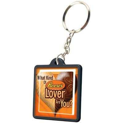 Square shape plastic keychain. Add a 4 color SpectraDomeª logo on both sides of the keychain to optimize the branding area.