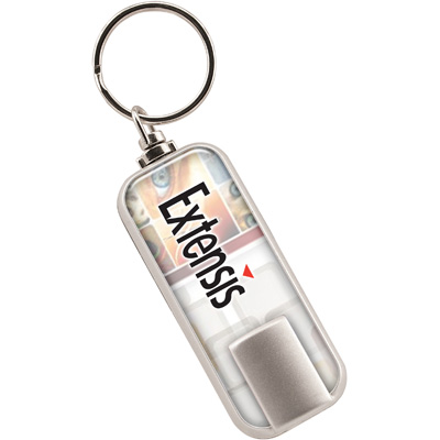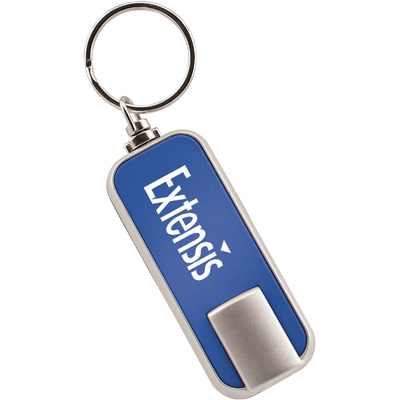 Keychain push button LED light with split key ring. Designed for SpectraPrintª 4-color process decorating option. Batteries included.