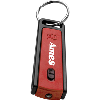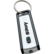 Keychain LED light with split key ring. Features stylish black accents and large imprint area. Battery included.