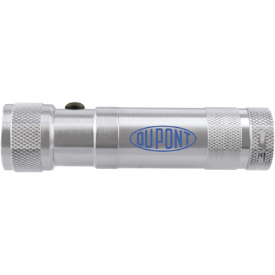Metal LED flashlight features 8 ultra-bright 8 LEDs and an FDA approved laser pointer. Uses 3 AAA (not included).