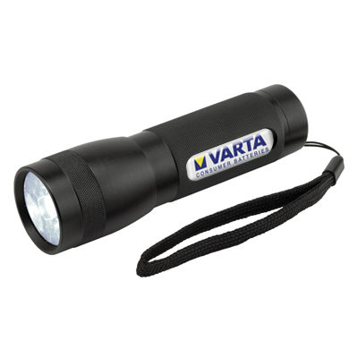 Metal LED flashlight features 1 oversized ultra-bright LED, convenient carry strap and, light weight and sturdy aluminum body construction. Uses 3 AAA (not included).